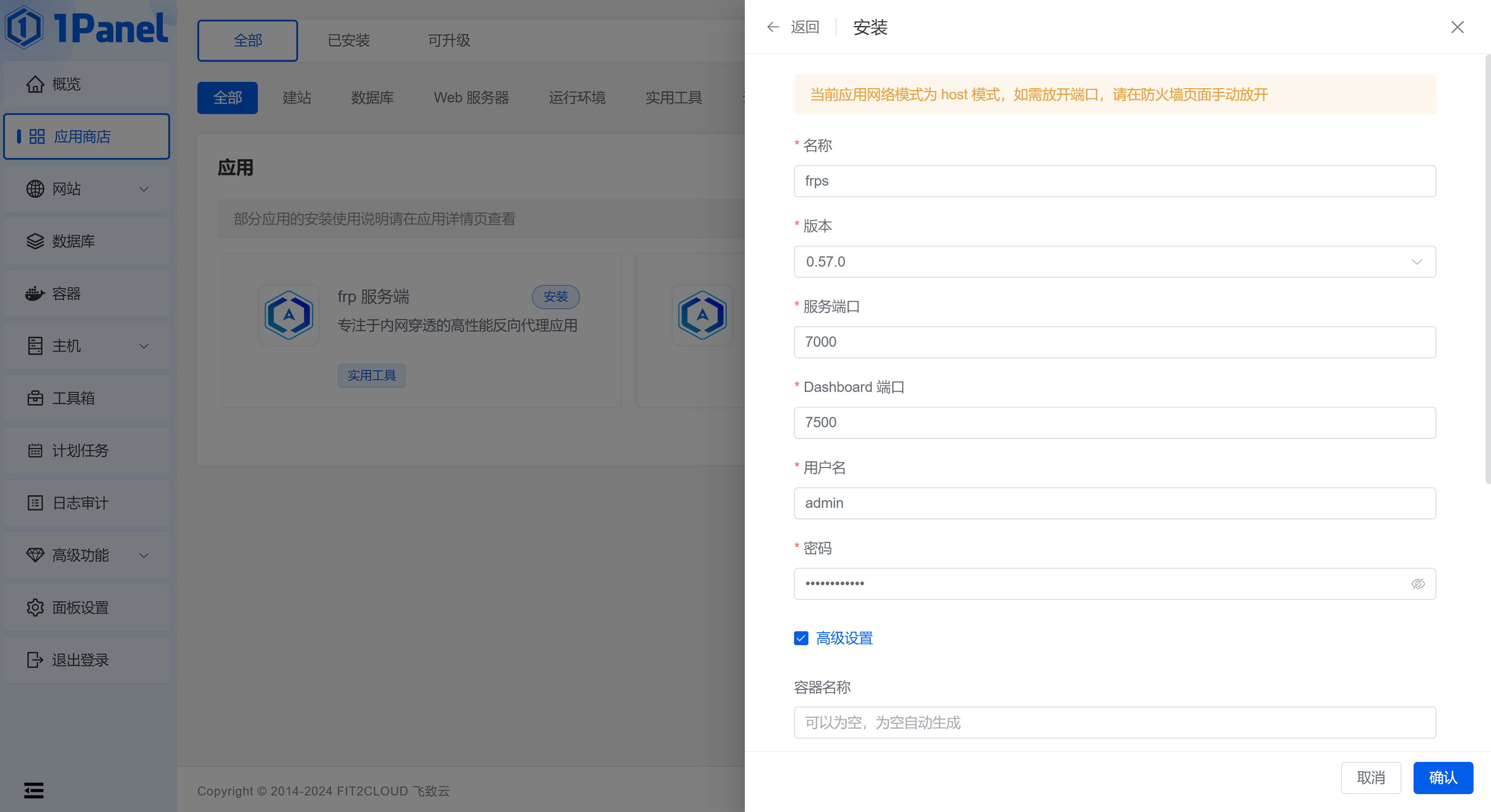 - /etc/frp/frps.toml:/etc/frp/frps.toml1Panel部署