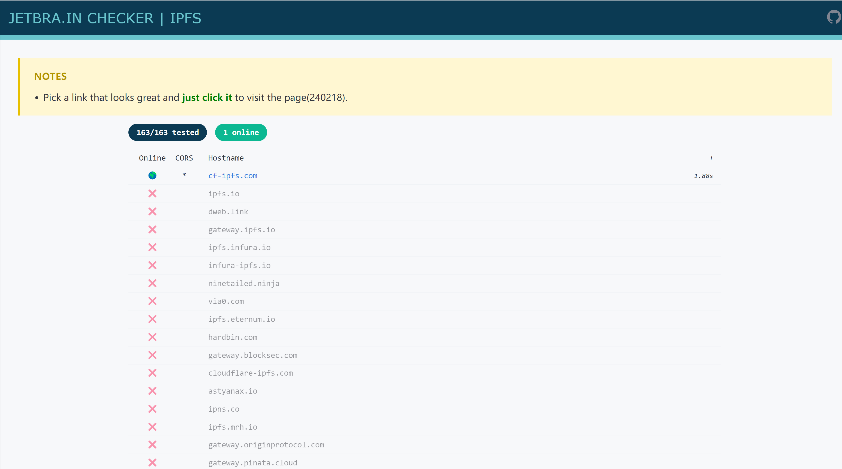 打开网站后,选择状态为Online的网址,并点击进去(如图所示,推荐选择带星号)