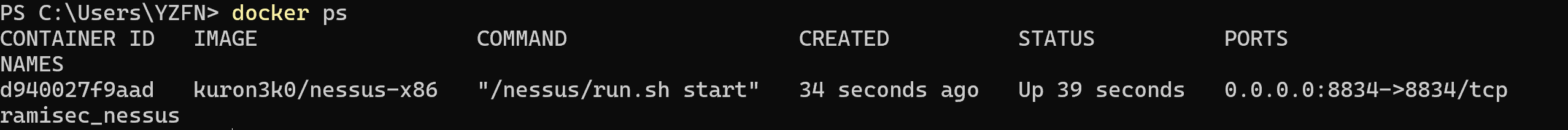 docker run -itd --name=ramisec_nessus -p 8834:8834 kuron3k0/nessus-x86 docker run -itd --name=ramisec_nessus -p 8834:8834 makeyang/nessus 密码获取
