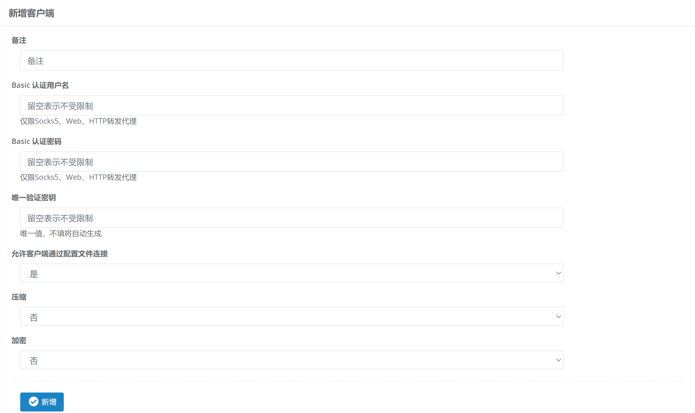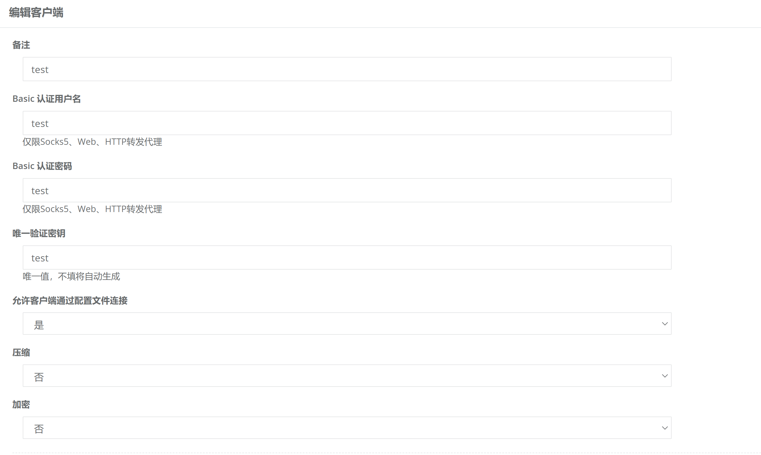docker run -d --name nps --net=host -v <本机conf目录>:/conf ffdfgdfg/nps配置客户端